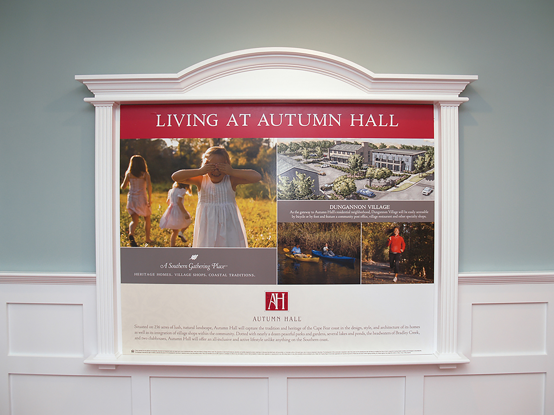 During the initial phase of marketing the Autumn Hall community in Wilmington, NC, I took on the responsibility of creating the brand identity. This involved extensive work in developing various marketing materials such as brochures, signs, flyers, and signage specifically for the sales center and lots. These materials played a crucial role in aiding the sales efforts during the construction phase.